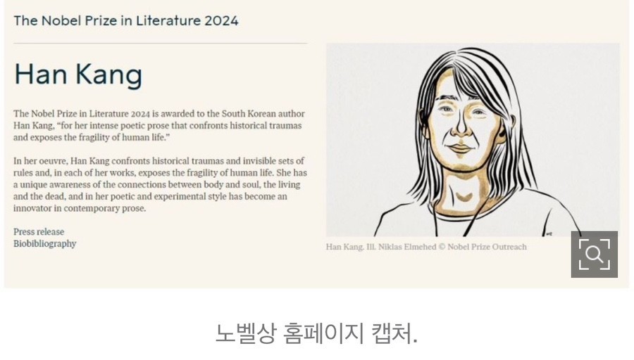 한 강 작가의 노벨상 수상은 개인의 영예를 넘어 한국 문학사의 기념비적 족적임에 분명하다. 한국 문학이 세계 문학의 중심부에 올라서는 전환점이 됐다는 사실이 더 값지다. 노벨문학상 수상은 전세계에 열풍을 몰고 온 한국 문화(K-컬처)가 화룡점정하고 도약했다는 뜻이 담겼다.