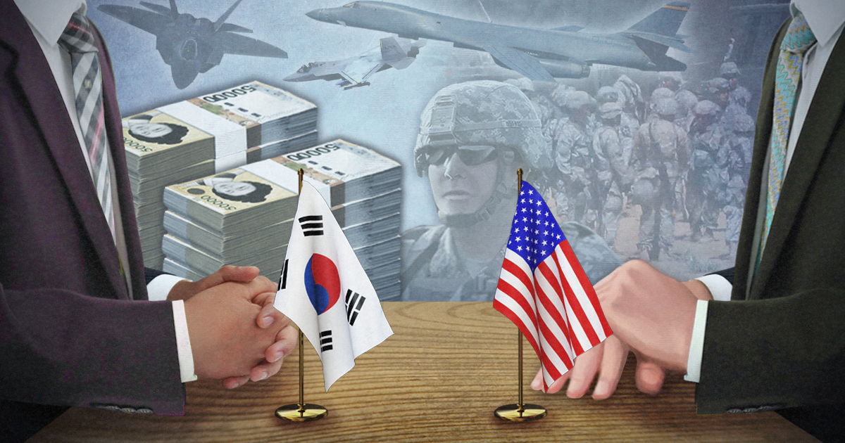 한미 방위비분담금특별협정에서 한국의 부담 범위는 주한미군 한국인 고용원 임금, 군사 건설비, 군수 지원비까지다. 그런데도 트럼프행정부는 이 규칙을 한참 벗어나 주한미군 인건비, 미군의 한반도 순환배치 비용, 역외 훈련비용까지 포함하라는 억지를 부리고 있다.