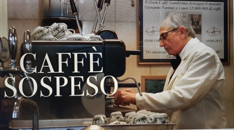 ‘맡겨둔 커피’라는 뜻을 지닌 ‘카페 소스페소(caffe sospeso)’는 나폴리만의 독특한 온정이었다. 어렵게 살아도 커피 한 잔은 마셔야 하루를 시작하는 게 이탈리아 사람들이다. 커피 한 잔도 마시기 어려운 이웃을 위해 누군가 짜낸 지혜가 ‘소스페소 커피’다. 여분의 커피 값을 치른 후 영수증을 가게에 비치된 통에 놓아두거나, 창문같이 눈에 잘 띄는 곳에 붙여놓는다.