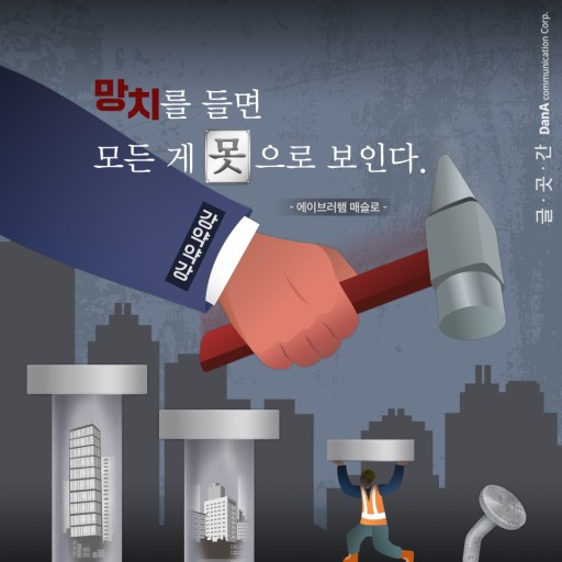 나라를 경영하는 권력은 망치질의 유혹에 빠지기 쉽다. 특정 도구에 몰입하면 시야가 좁아질 확률이 높다. 미국 뉴욕타임스는 사설에서 "망치가 있으면 모든 게 못으로 보인다. 사람의 경험이 부동산 거래로 제한돼 있으면 모든 게 임대계약 협상으로 보인다"고 부동산 재벌인 도널드 트럼프 미국 대통령을 꼬집은 바 있다.