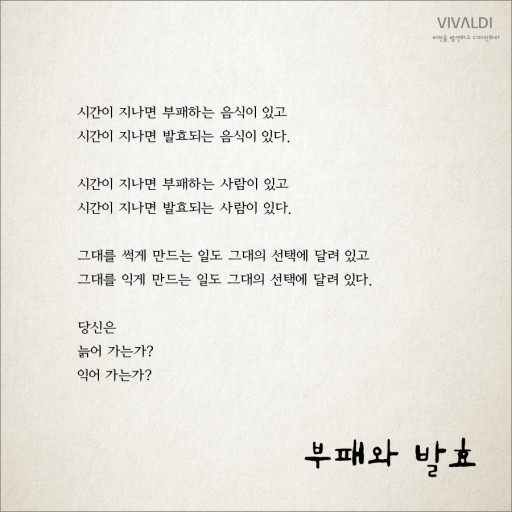 부패와 발효가 같은 경계선에 있듯이 정치인은 교도소 담장 위를 걷는 것과 같다고 흔히 얘기한다. 자칫하면 교도소 담장 안으로, 운 좋으면 담장 밖으로 떨어진다. 정치인의 부패와 발효는 단순히 돈으로만 판명이 나지 않는다. 도덕적 정신적인 부패와 발효의 갈림길도 중요하다. 썩은 것은 과감히 척결하고, 발효하는 건 더 깊이 품어야 한다.